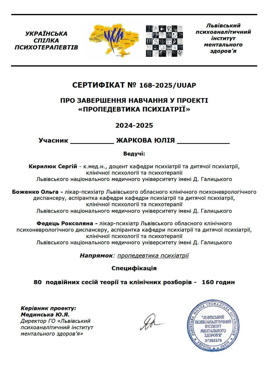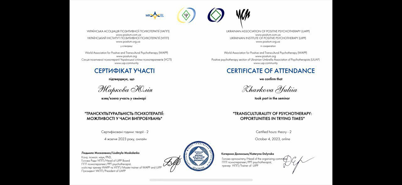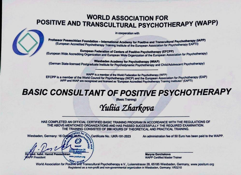 Я оказываю помощь тем, кто столкнулся с трудностями во внутренней, семейной, рабочей, социальной жизни, работаю с запросами, связанными с тревогой, депрессией, кризисом смыслов и другими проблемами. Ориентирована на результат, работаю с клиентами всех возрастов, разной сексуальной и гендерной идентичности.