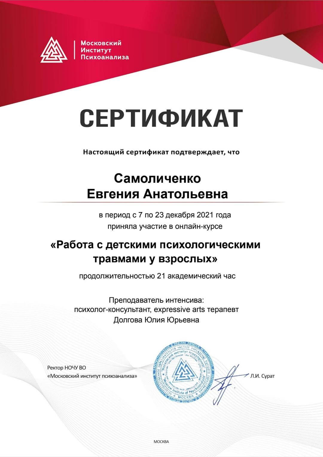 Также в своей работе я использую техники КПТ, клиент-центрированной терапии, майндфулнес, среди других.