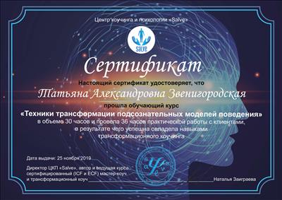 Центр коучинга и психологии Salve успешно овладела техникой трансформации подсознательных моделей поведения, навыками трансформационного коучинга